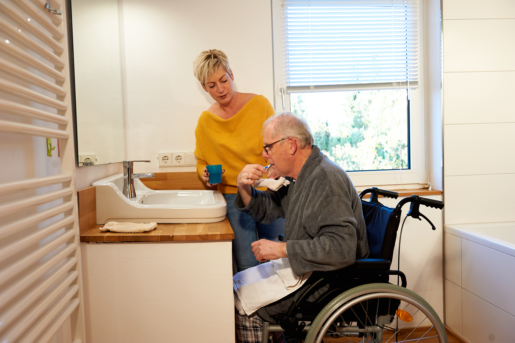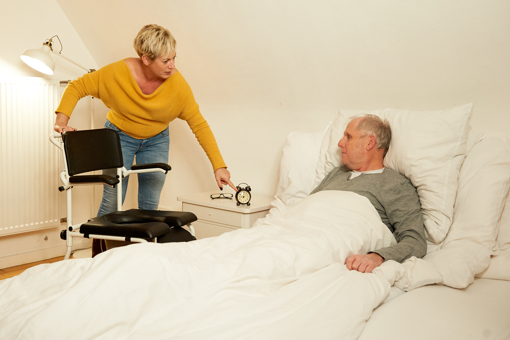 Im Training zeigen wir Ihnen, wie Sie Ihren Angehörigen bspw. von der Bettkante in den Rollstuhl umsetzen oder wie Sie ihm beim Aufstehen helfen. Sie erfahren, was bei Bettlägerigkeit zu beachten ist und wie Ihr Angehöriger mit Ihrer Hilfe die Lage im Bett verändern kann. Sie lernen, wie Sie Druckgeschwüre oder ähnliche Folgeschäden vermeiden können.